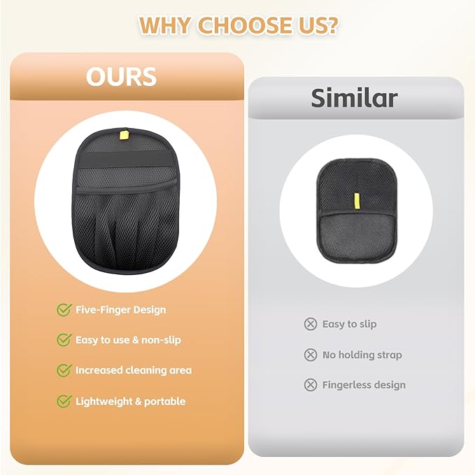 - Suitable for Any Surface: These pet hair mitt gloves bend and flex to hug curves and corners, lifting pet hair from sofa seams, car seats, pet beds, sweaters, rugs—even tricky spots like baseboard gaps. No more stray hairs left behind, just clean surfaces. Ditch those frustrating lint rollers that miss half the hair. For pet owners who want one reliable tool for daily messes, this is your all-in-one solution.
