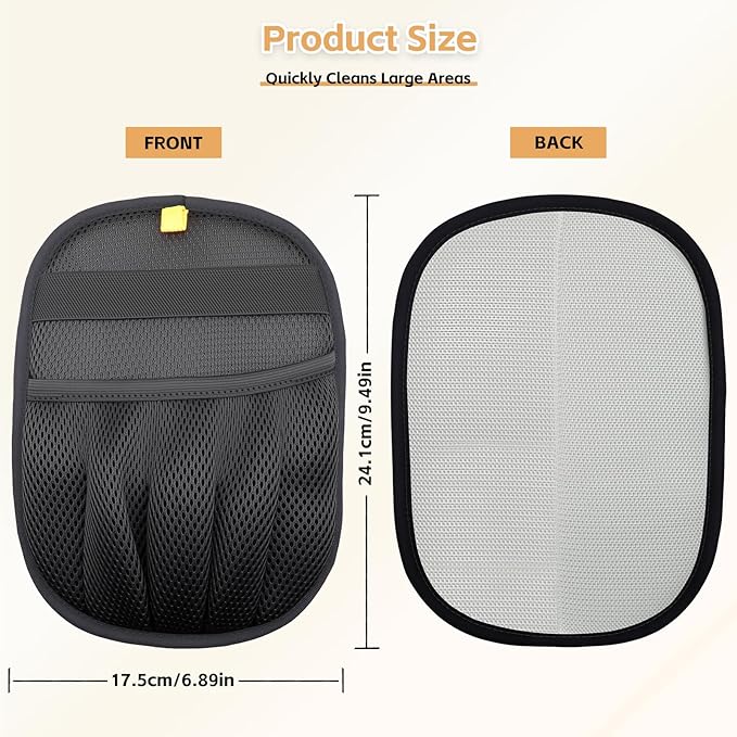 - Remove Pet Hair Effortlessly: Harnessing electrostatic power, our electro static gloves for pet hair instantly attract and lock away pet hair, lint, and dust from furniture, sofas, carpets, and car seats. Skip the elbow grease—no tedious scraping needed! Just glide the gloves over surfaces to capture even fine hairs in seconds. Perfect for busy pet parents, allowing them to quickly solve cleaning problems.