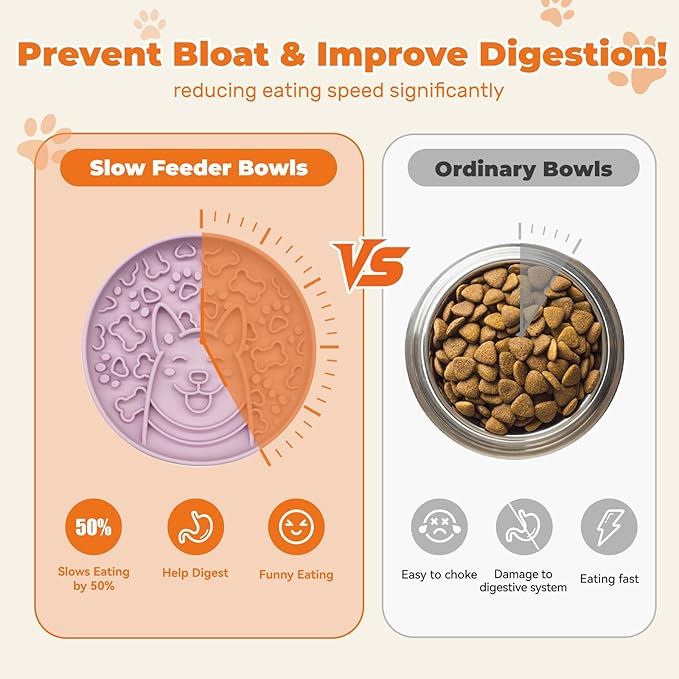 Dogs Slow Feeder Bowl,Silicone Dogs Bowl,Non-Slip Design, Puppy Pattern Interval Eating Slowly. (Peach Pink)