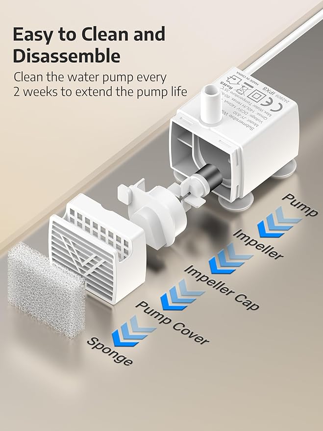 - Whisper Quiet Water Pump: Our low-noise pump of large pet water fountain operates at ≤25 dB, allowing a gentle smooth sound not to cause disturbance and creating a natural water source.
