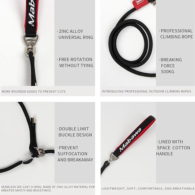 - 【Lightweight & Durable】: Slip lead dog leash is made of high-quality climbing grade nylon rope, 0.23 inches (6mm) in diameter, lightweight, durable, wear-resistant, not easy to break and twist, it can withstand strong pulling force. The dog stop pulling leash has 1 zinc alloy O-ring, which can be used to hang dog walking accessories.