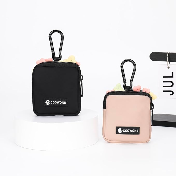 Dog Treat Pouch 2 PCS, Waterproof Small Dog Treat Bag for Leash, Hands Free Puppy Walking Bag with Carabiner, Pet Poop Bag Holder for Pet Puppy Travel or Outdoor Use, Zipper Closure to Avoid Spilling