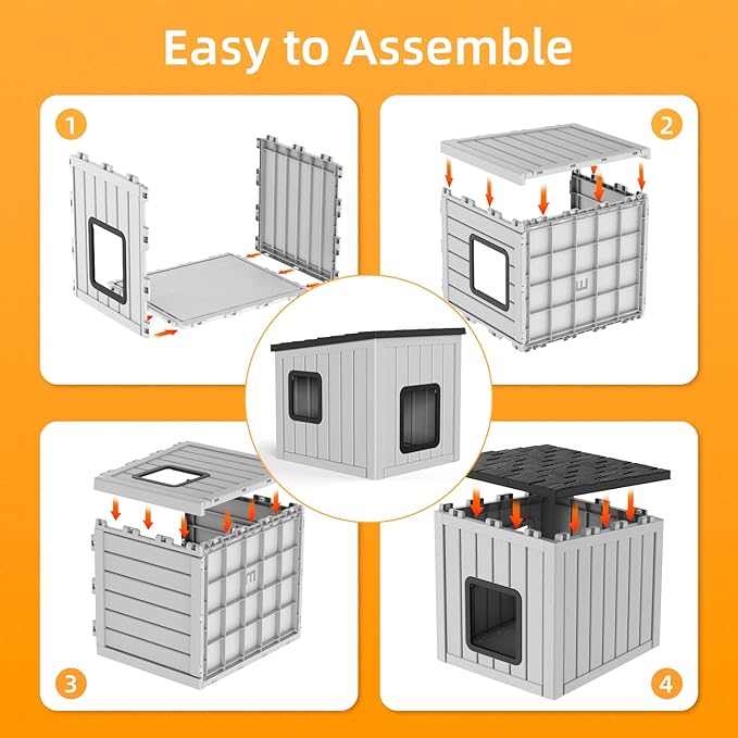 - Elevated Floor & Easy to Clean:The elevated floor design keeps the dog house away from damp ground, ensuring a dry space. The smooth resin surface is easy to clean—simply wipe with a cloth to maintain hygiene, ideal for busy pet owners.