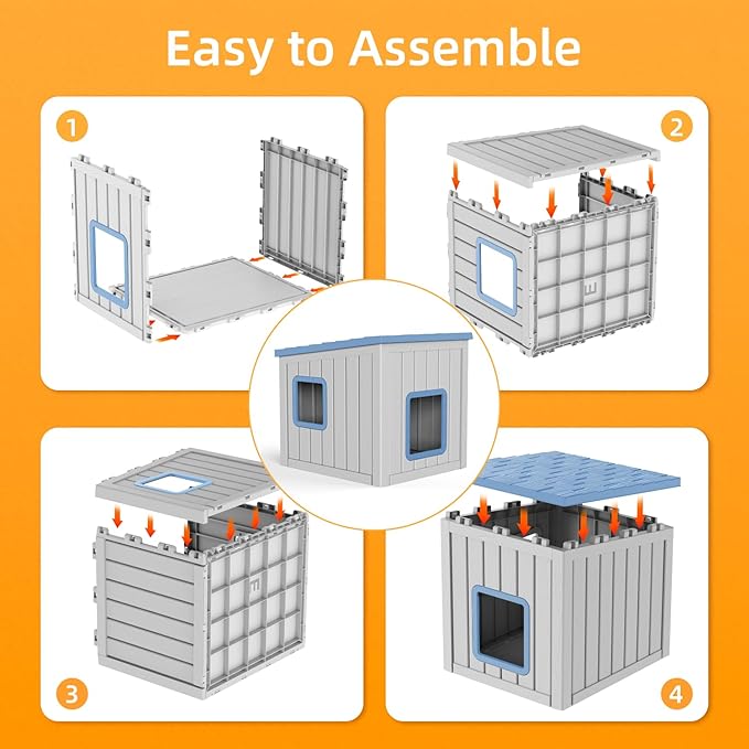 - Elevated Floor & Easy to Clean:The elevated floor design keeps the dog house away from damp ground, ensuring a dry space. The smooth resin surface is easy to clean—simply wipe with a cloth to maintain hygiene, ideal for busy pet owners.