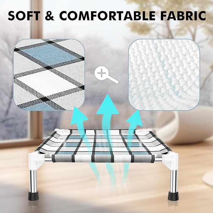 - 【STYLISH DESIGN OF RAISED DOG BEDS】Not only prioritizing comfort, our raised dog beds also emphasize stylish design. The minimalist blue and white grid design concept makes it an integral part of home decor, adding a unique touch of sophistication to your household