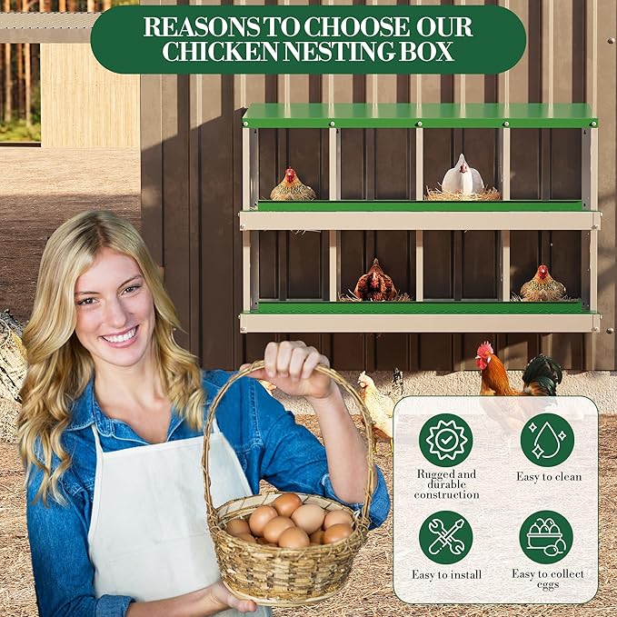 • ‌Built to Last for Your Flock‌: Made from heavy-duty galvanized steel, this rustproof chicken nesting box stands strong against weather and wear, giving you years of reliable use so you can focus on happy, healthy hens instead of replacements